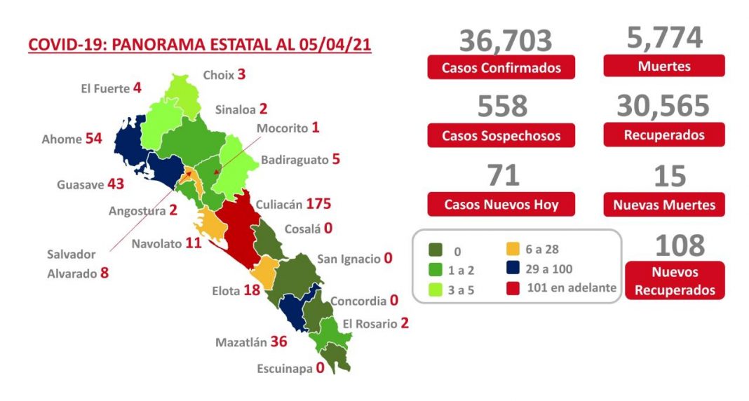 CULIACÁN, Sin.- En el día 403 desde el primer caso detectado por COVID-19 Sinaloa registró 15 nuevos fallecimientos reportados en las últimas 24 horas para acumular 5,774 decesos.