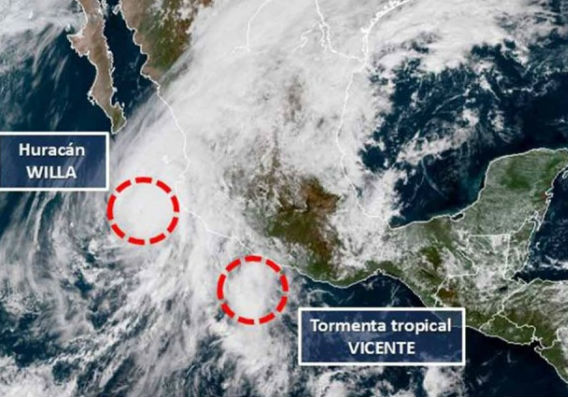 De manera casi simultánea, la tormenta tropical Vicente impactará como depresión tropical entre las costas de Michoacán y Colima.