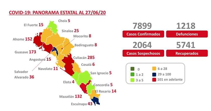 Los 49 decesos (Guasave 23, Culiacán 9, Salvador Alvarado 5, Sinaloa 4, Mazatlán 2, Ahome 2, Cosala 1, Elota 1, Mocorito 1, Angostura 1) sumaron hasta hoy un total de mil 218 casos.