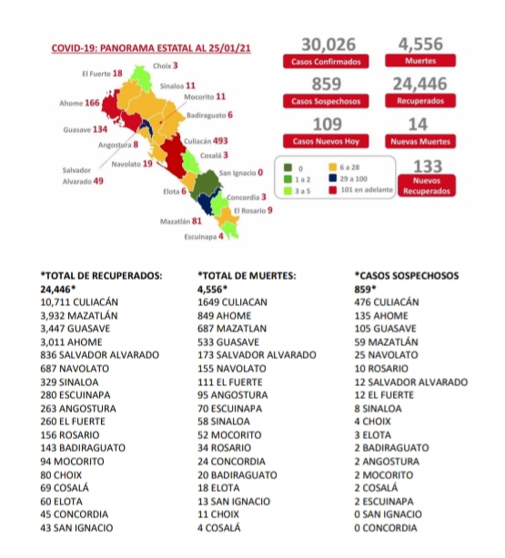 CULIACÁN, Sin.- Sinaloa suma 13 nuevos fallecimientos reportados en las últimas 24 horas (Ahome 4, Guasave 3, El Fuerte 3, Mazatlán 1, Navolato 1, Badiraguato 1).