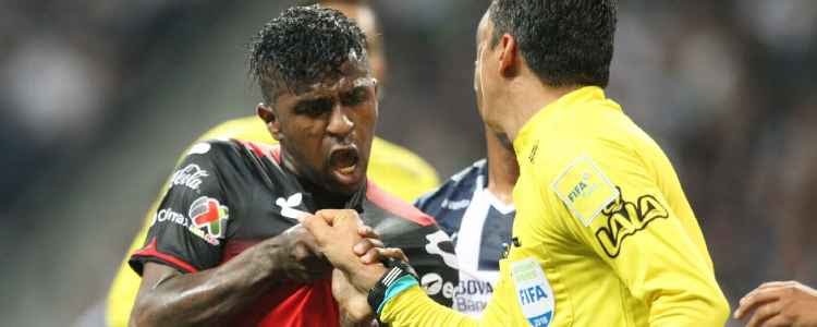 El árbitro asistente jaló de la camiseta al delantero de Tijuana, mientras se desataba en reclamos hacia jugadores rivales. Tal vez con el afán de calmarlo y controlarlo, Quintero Huitrón cometió el error de tomarlo de la camiseta, a la altura del pecho, para hacerlo a un lado.