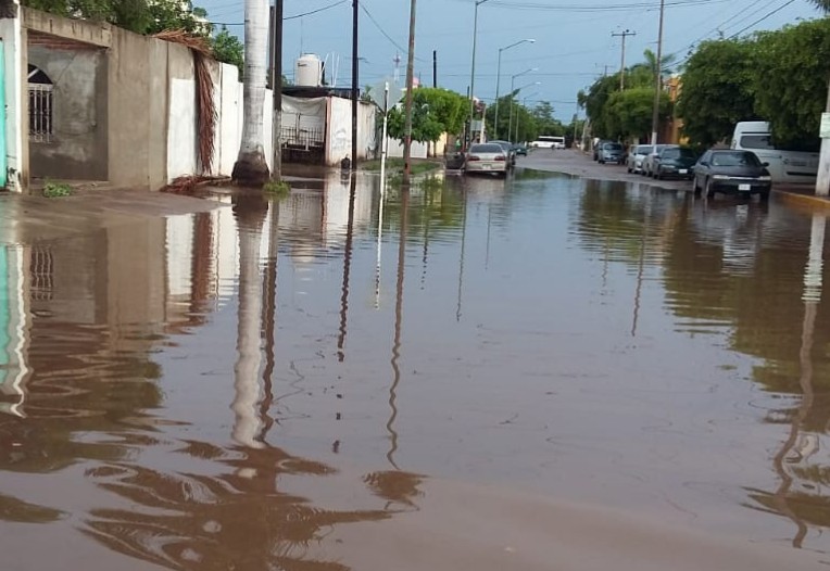En Navolato algunas colonias de Villa Juárez, la ciudad de Navolato y Villa Ángel Flores “La Palma”, registraron altos encharcamientos impidiendo el paso al peatón.