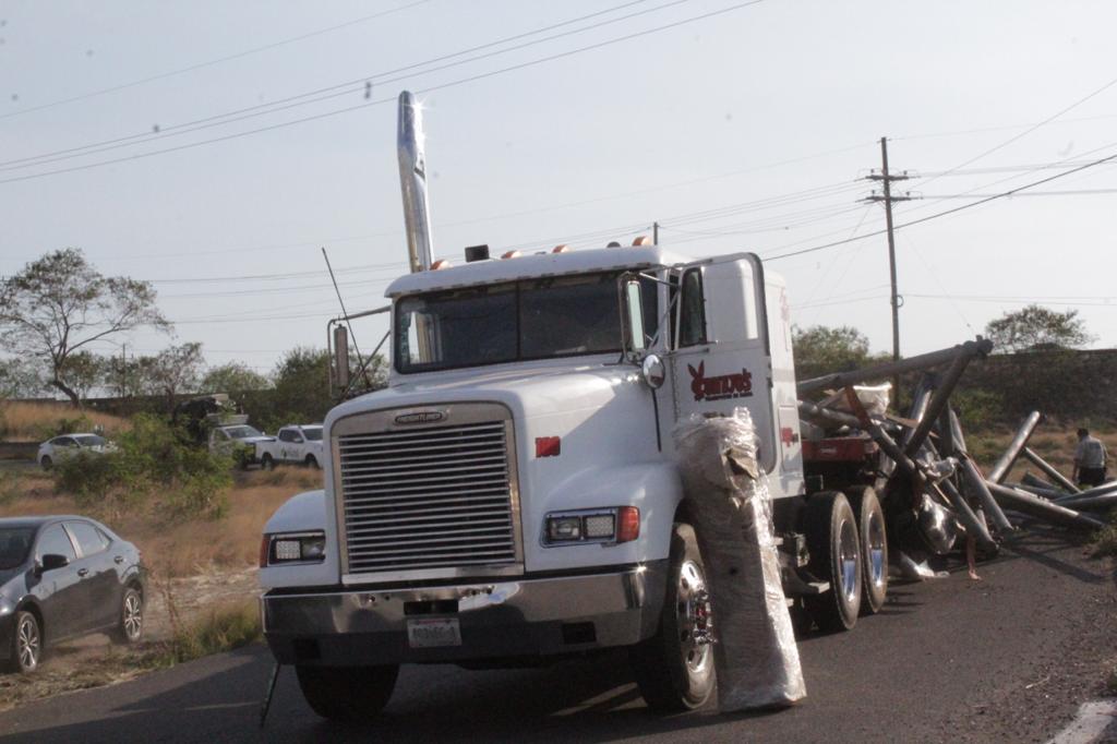CULIACÁN, Sin.- Un tráiler interrumpió la cirulación sobre el sitio carretero “El Trébol” al caerse algunos tubos metálicos que transportaba.