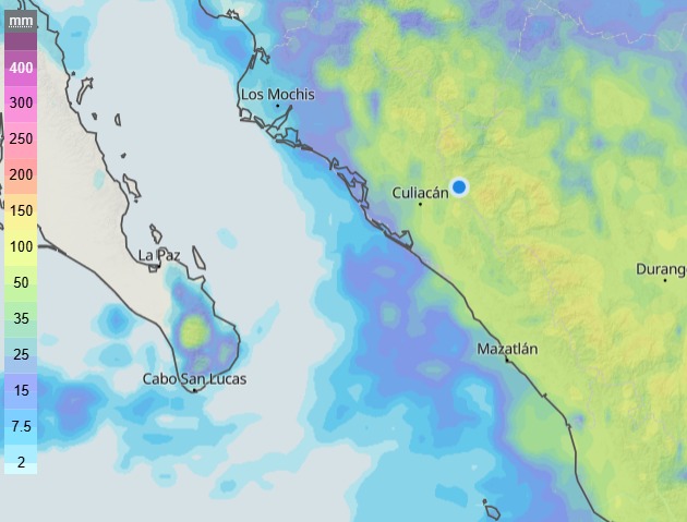 Mientras que en Surutato consideró los 75 milímetros, Badiraguato 100, Pericos 75, Culiacán 75, Altata 75, Costa Rica 70.