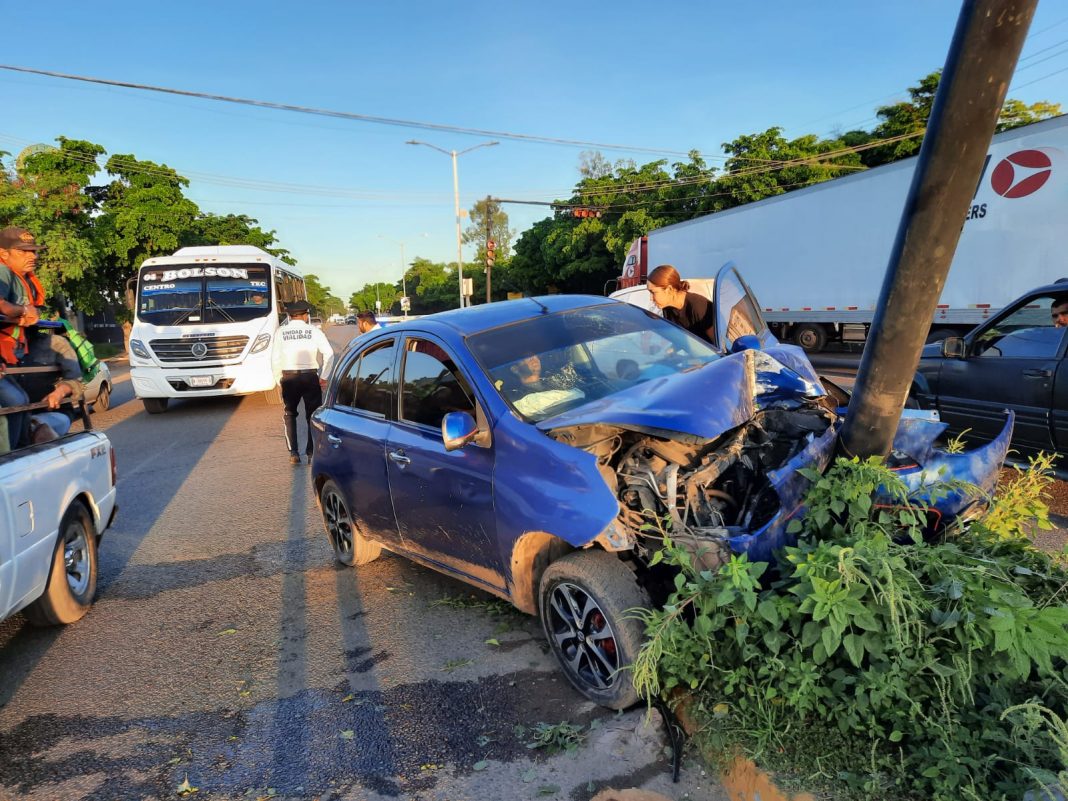 CULIACÁN, Sin.- En presunto estado de ebriedad un conductor de un automóvil terminó impactado en un poste de la vía pública sobre la carretera Culiacán-Navolato a la altura de Bachigualato.