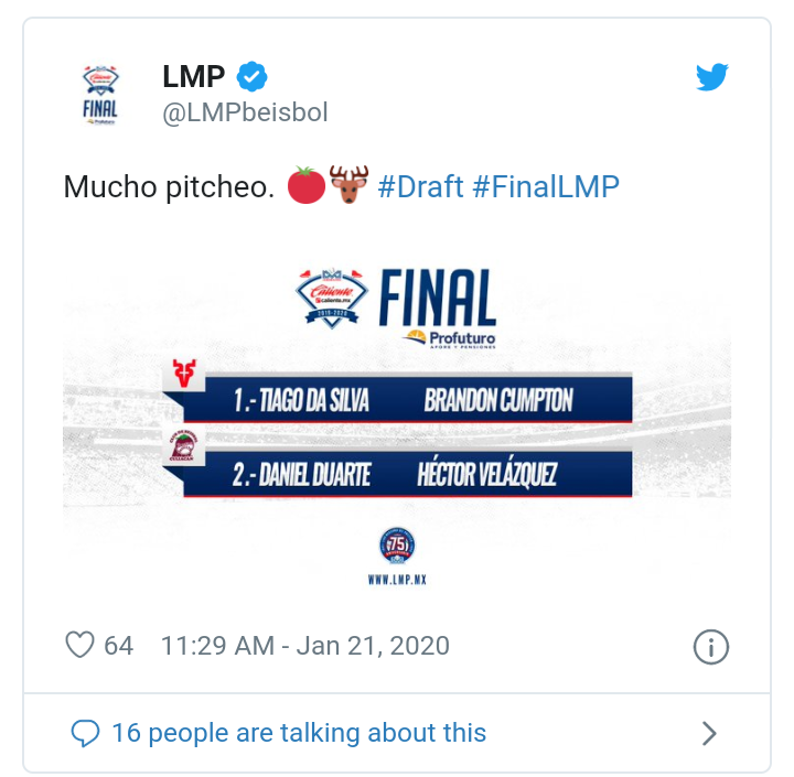 GUADALAJARA, Jal.- Los equipos finalistas de la Temporada Caliente.mx 2019-2020 de la Liga Mexicana del Pacífico, Tomateros de Culiacán y Venados de Mazatlán, eligieron los refuerzos para integrar a su roster de cara al duelo por el título.