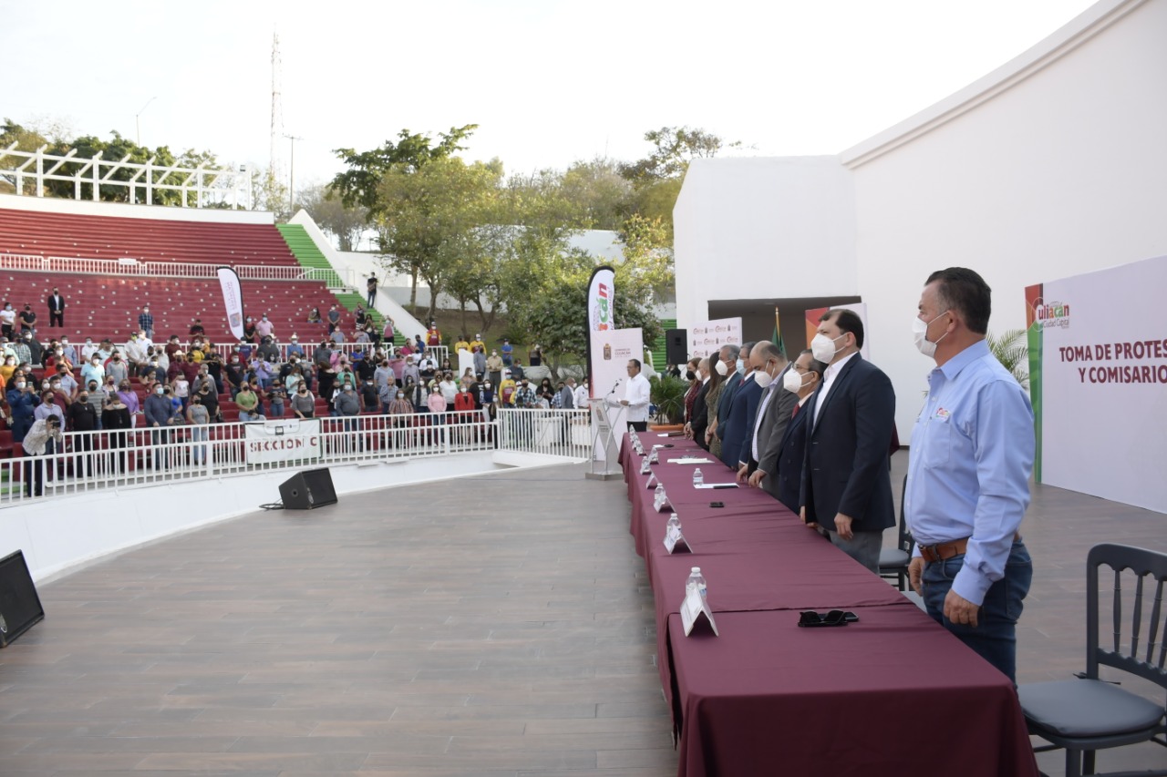 En el Teatro Griego del Parque Culiacán 87 tuvo lugar el nombramiento donde el presidente municipal conminó a los comisarios a realizar su mejor esfuerzo y donde resaltó que este fue un ejercicio democrático en el que fueron los ciudadanos quienes eligieron a sus representantes.