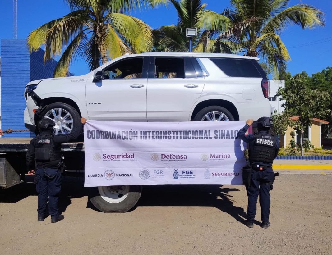 CULIACÁN, Sin.- Elementos del Ejército Mexicano y la Secretaría de Seguridad Pública del Estado, a través de la Policía Estatal Preventiva, en coordinación con la Guardia Nacional, la Secretaría de Marina, la Secretaría de Seguridad y Protección Ciudadana, la Fiscalía General de la República y la Fiscalía General del Estado, localizaron y recuperaron una camioneta robada, además de que se detuvo a una persona.