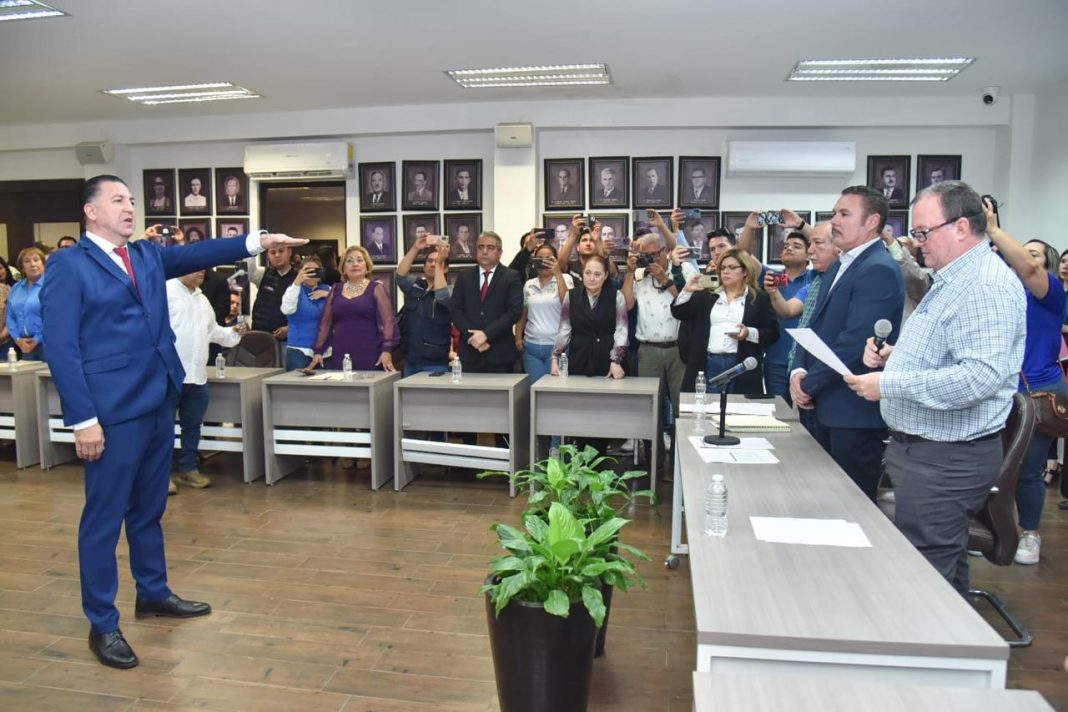 LOS MOCHIS, Sin.- El Cabildo del Ayuntamiento de Ahome celebró sesión extraordinaria para la toma de protesta del presidente municipal sustituto Gerardo Iván Hervás Quindos, así como los suplentes de la sindicatura de procuración y regidores que pidieron licencia en la anterior sesión ordinaria.