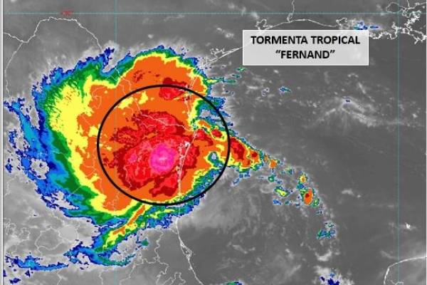 Se confirmó que la #TormentaTropical #Fernand tocó tierra a las 11:15 horas, tiempo del centro de #México, en las inmediaciones de Boca de Catán, a 55 km al norte de La Pesca, Tamaulipas, con #Vientos 💨 máximos sostenidos de 75 km/h y #Rachas de 95 km/h pic.twitter.com/baaa2pvtzE