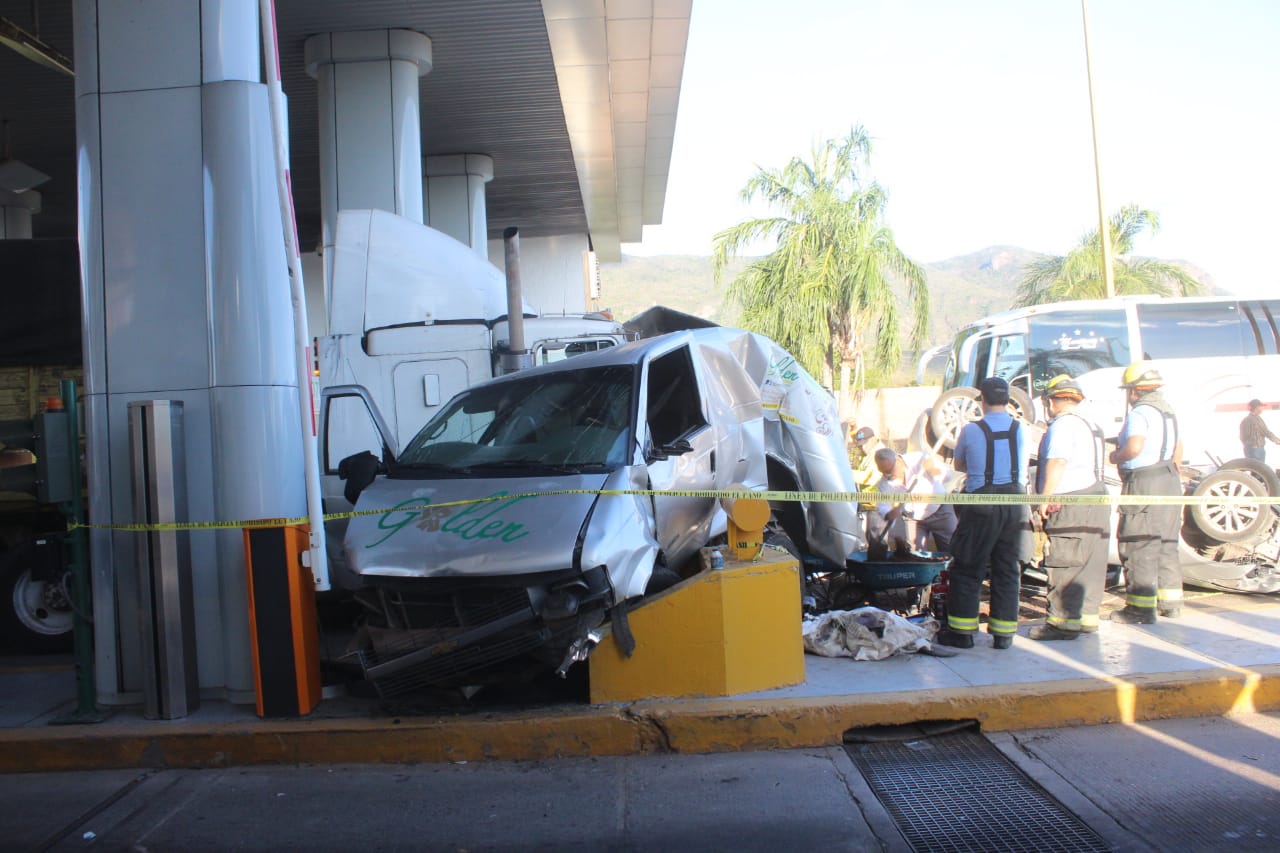 CULIACÁN, Sin.- Dos heridos fue el saldo al quedarse un tráiler cargado de fertilizante sin frenos e impactarse contra dos vehículos estacionados en la fila de espera de la caseta de cobro de El Limón de los Ramos.