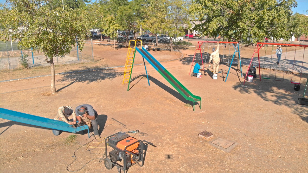 Dichos trabajos consisten además en la rehabilitación de barda perimetral, pintura, mantenimiento y sustitución de pasto sintético, por lo que el personal del municipio laborará en estas tareas el tiempo necesario.