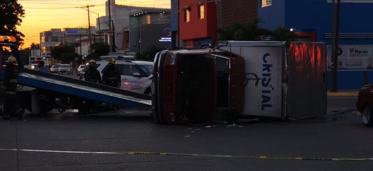La colisión terminó con una camioneta de carga volcada y con fuga de gas en la misma lo que provocó la movilización de los cuerpos de rescate tras pasarse el alto uno de los dos vehículos