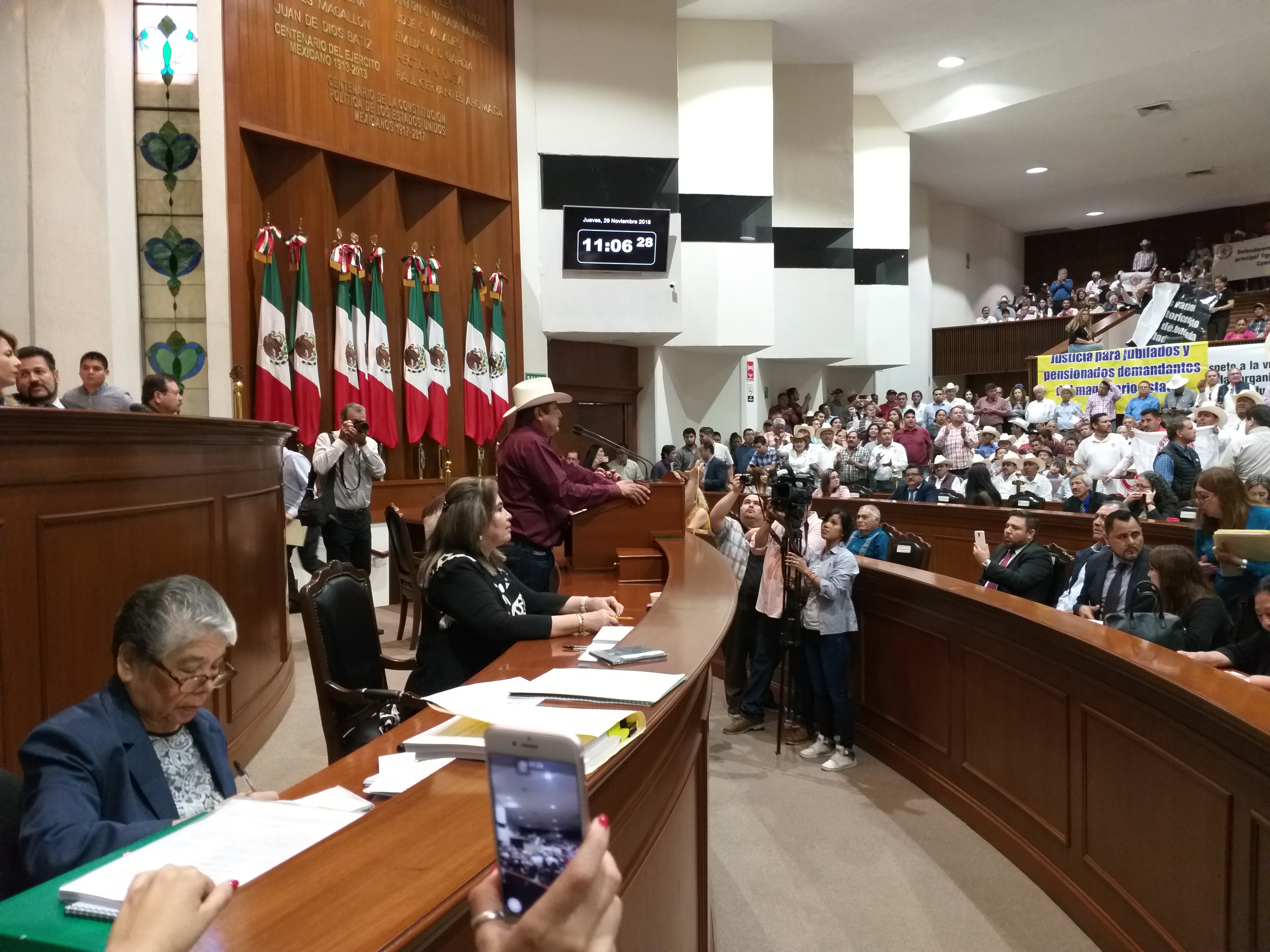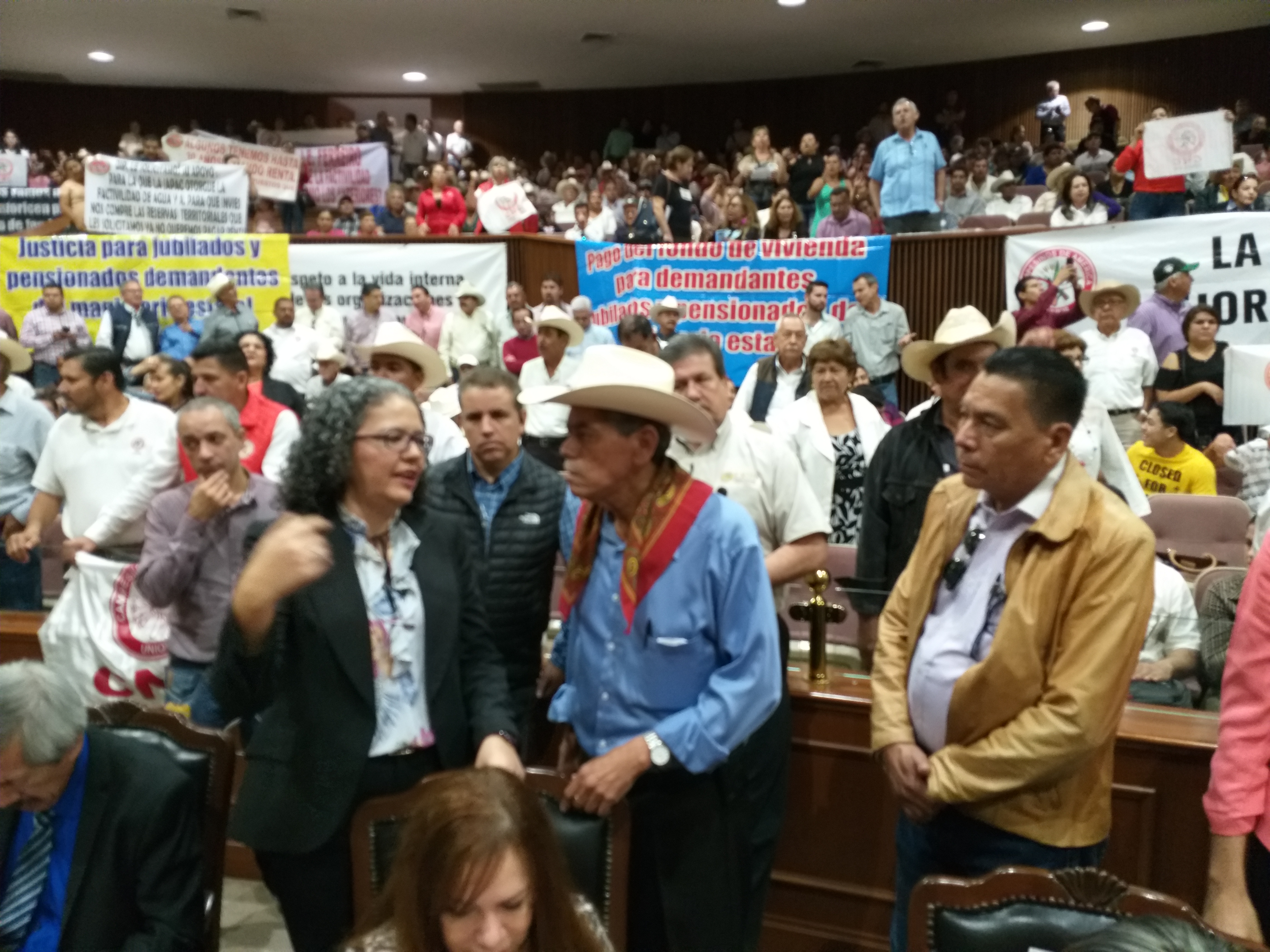 “Es un error estar con Obrador… el pueblo unido jamás será vencido”, son las consignas que los más de 500 cenecistas gritan desde el área de visitantes y la tribuna que fue tomada con intervenciones en principio por los diputados priistas Faustino Hernández Álvarez y Ana Cecilia Moreno Romero.