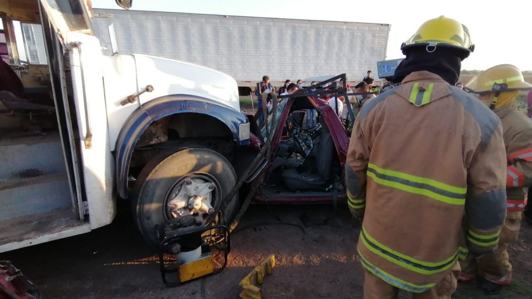Presumiblemente el camión de jornaleros invadió el carril de la pequeña unidad en un intento por esquivar a otro camión que se había detenido.