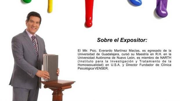 Martínez Macías es autor del libro “Heterosexualidad: Historias reales”, donde expone supuestos casos de pacientes que dejaron la homosexualidad para “convertirse” en heterosexuales.