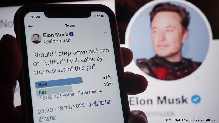 “¿Debería dimitir como jefe de Twitter?”, preguntó Musk. “Me atendré a los resultados”, agregó. Un 57,5 % de los más de 17 millones de usuarios que respondieron el sondeo lo hicieron afirmativamente, indicó la DW.