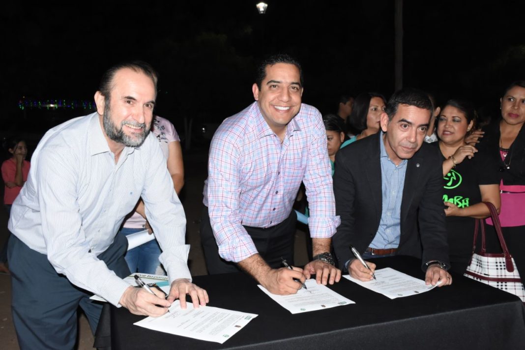 CULIACÁN, Sin.- El presidente municipal Jesús Valdés Palazuelos firmó un convenio con dos empresas socialmente responsables para atender 20 parques adicionales a los 153 que está atendiendo el Ayuntamiento.