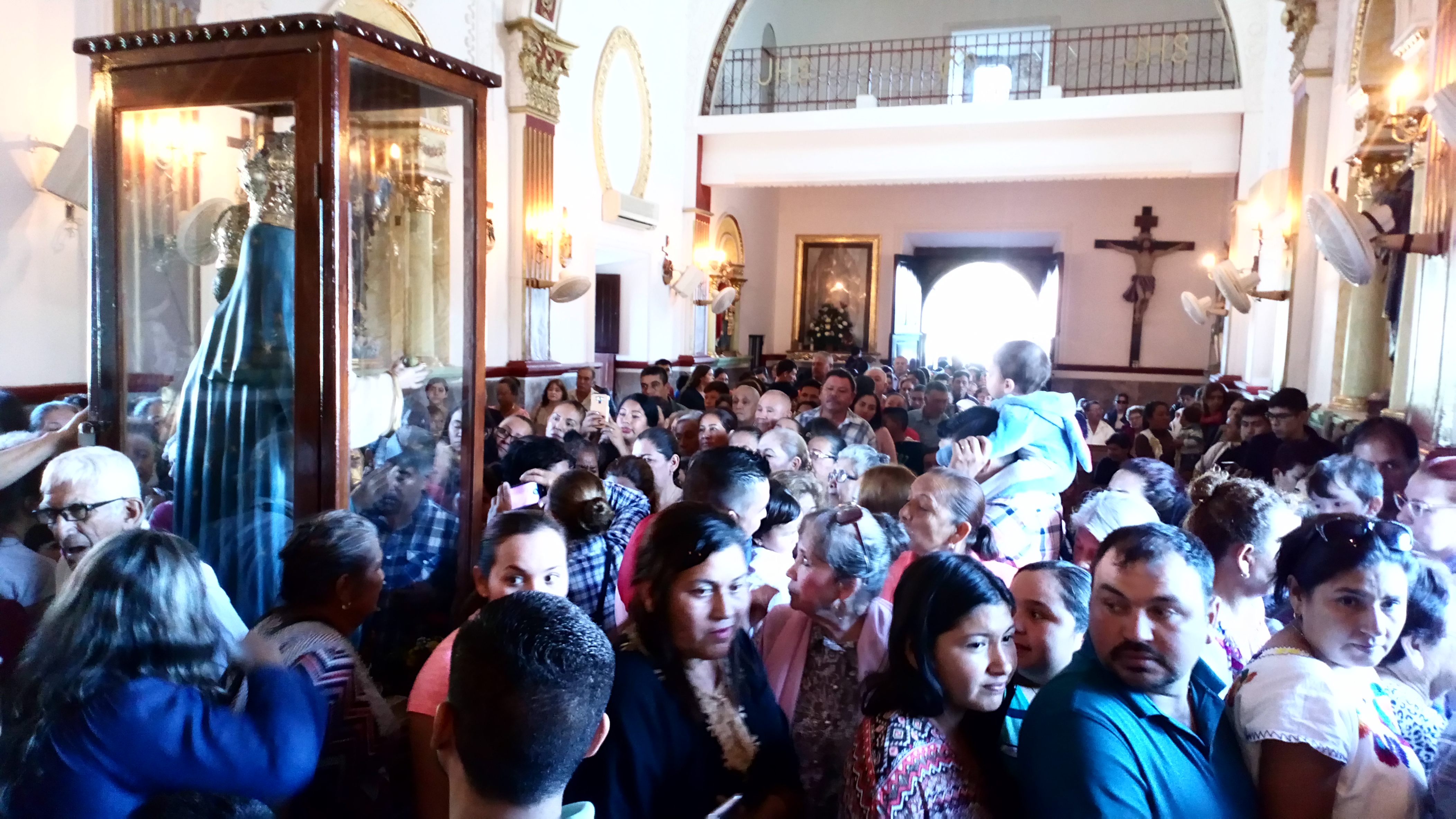 Desde las 6 de la mañana decenas de creyentes entraban al templo trabajado en cantera, mármol y modernos acabados para acercarse a la imagen que fue colocada a las 10 de la mañana en el pasillo del inmueble.