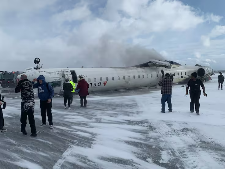 CIUDAD DE MÉXICO.- El Aeropuerto Internacional de Toronto, Canadá, fue el escenario de un accidente aéreo: un avión Delta Airlines sufrió un percance durante su aterrizaje y terminó volteado sobre la pista.