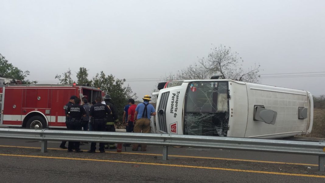 EL SALADO, Sin.- La volcadura de un camión de transporte de personal de una cadena de supermercados en Sinaloa se volcó esta mañana sobre la carretera México 15 dejando siete personas heridas.