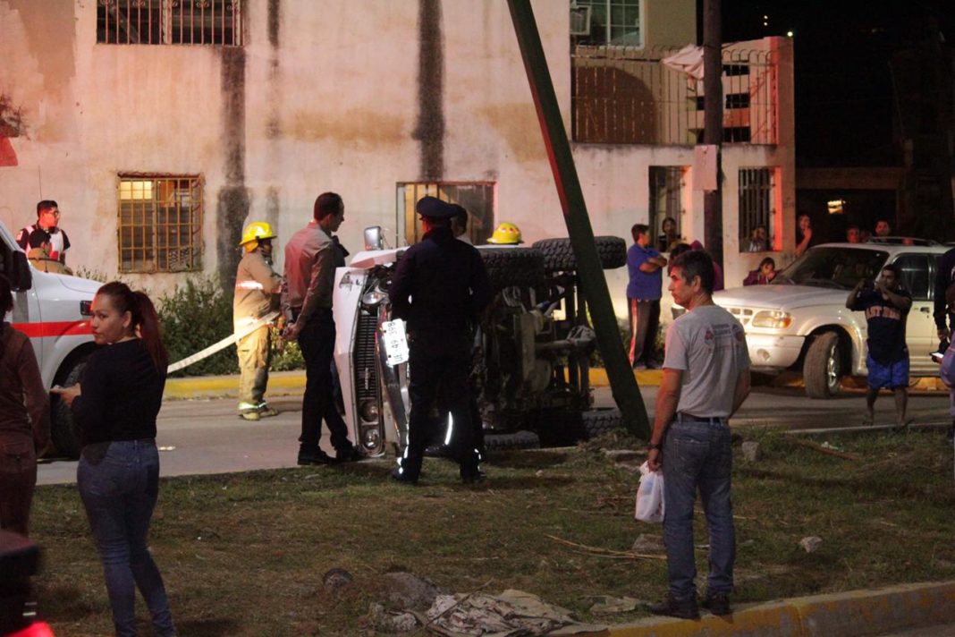CULIACÁN, Sin.- Un conductor perdió el control de su camioneta y terminó volcándose tras impactarse contra un poste de energía eléctrica en la colonia 21 de Marzo.
