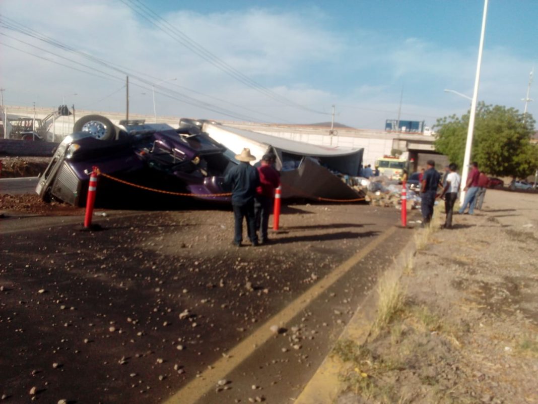 El camión se dirigía de norte a sur por la calzada Heroico Colegio Militar y al incorporararse al libramiento Benito Juárez “La Costerita” volcó.