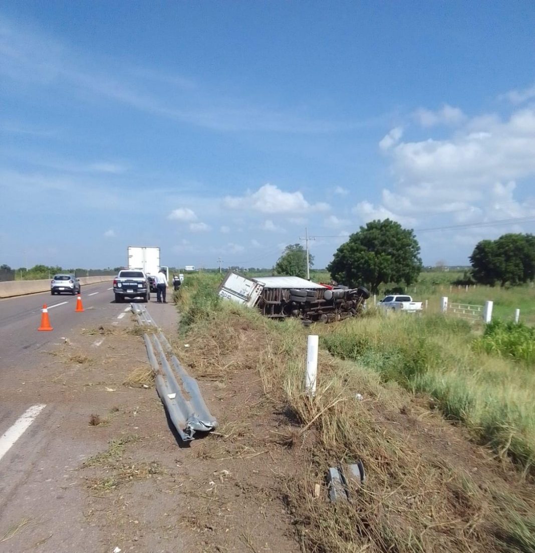 CULIACÁN.- Un trailer quedó volcado en el kilómetro 87 de la autopista Culiacán-Mazatlán o Maxipista la mañana de este martes.