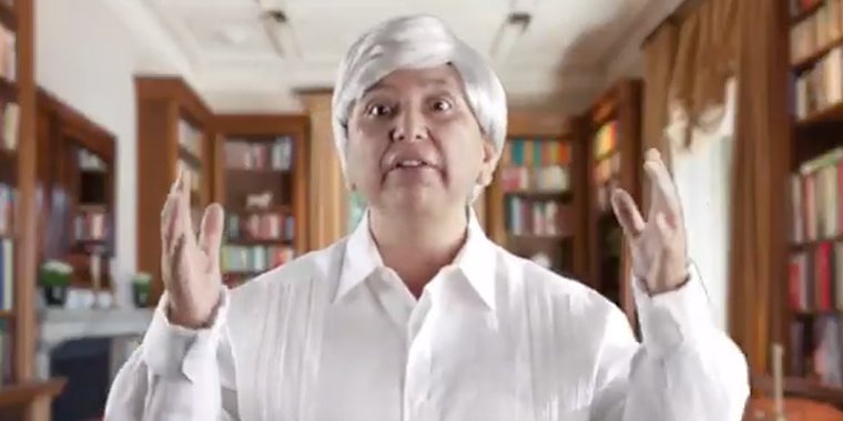 A través de redes sociales, Gálvez compartió un spot, en el que aparece con peluca blanca y guayabera imitando a López Obrador, exponiendo que siempre tiene que aparecer a lado de los candidatos de la coalición integrada por Morena, PT y Encuentro Social.